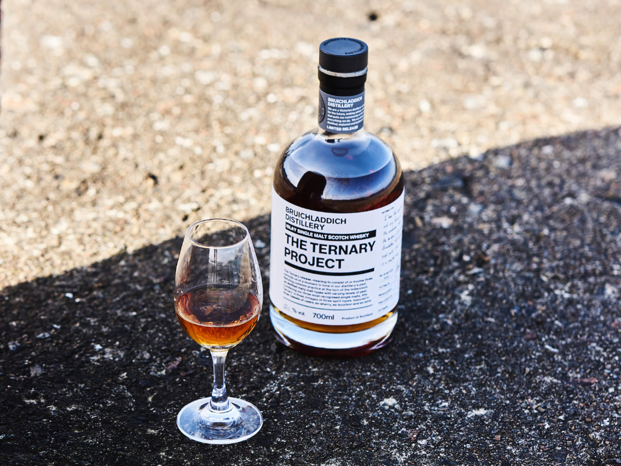 The Ternary Project ist ein exklusives Projekt unserer Bruichladdich-Destillerie. Es ist das erste einer Serie von Experimenten mit kleinen revitalisierten Mengen, die im Inneren des Sample Room unseres Chefbrenners entstehen. „Ternary“ bedeutet, dass es aus drei Teilen besteht – nämlich aus unseren drei renommiertesten Single Malts.