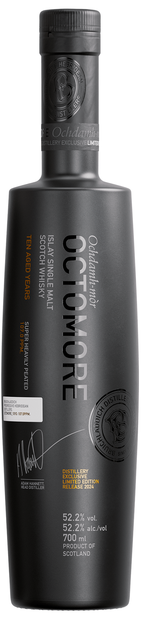 Butterscotch und Melasse ergänzen den charakteristischen Torfrauch von Octomore, wobei verschiedene Gewürzschichten die Komplexität dieses Single Malt Scotch Whiskys noch verstärken.