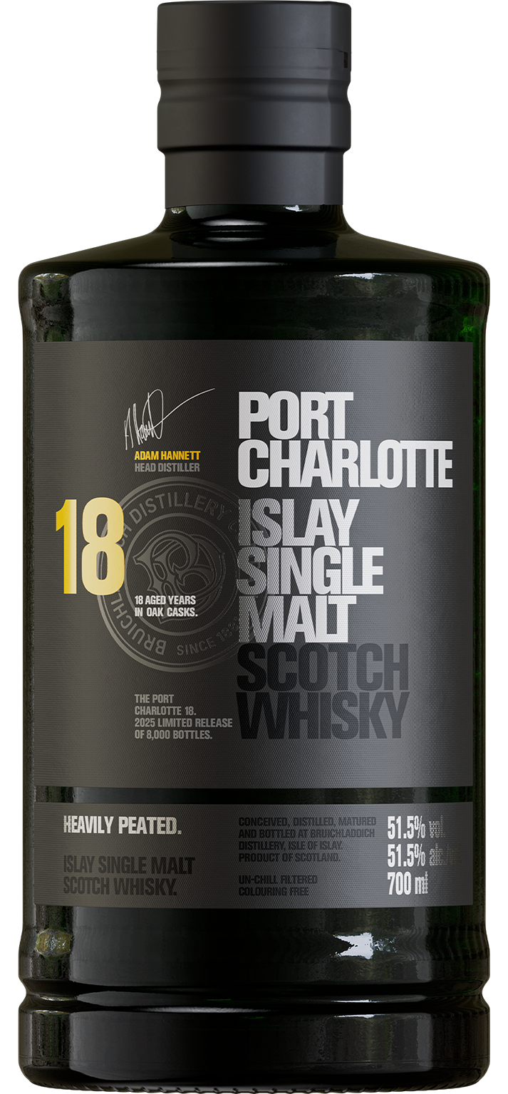Der auf 8.000 Flaschen limitierte Port Charlotte 18 Aged Years 2025 Edition ist der Inbegriff von Reife und Eleganz. Die Abfüllung zeigt den charakteristischen, trockenen Torfrauchcharakter des Port Charlotte (40PPM) auf höchst raffinierte Weise.